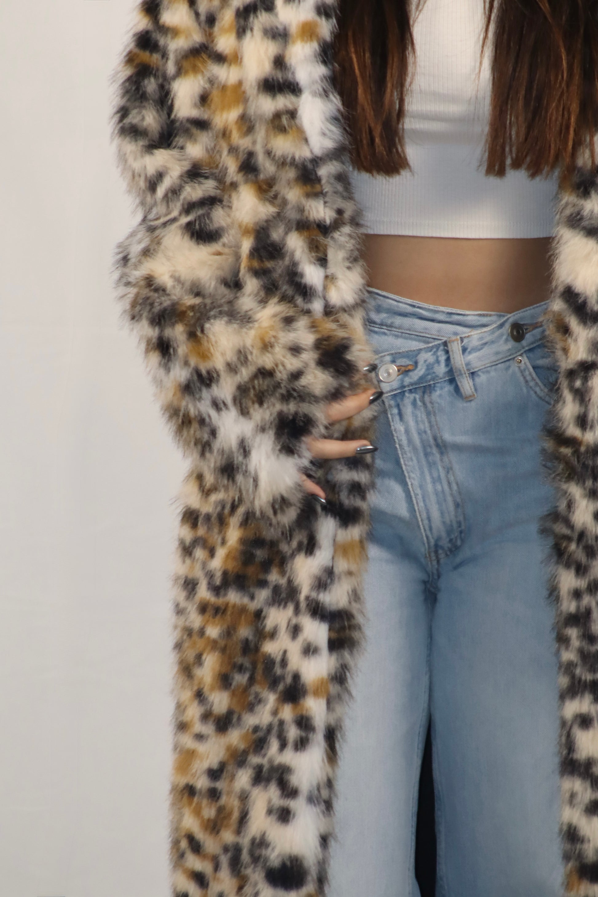 The Leopard Royale Coat commands attention with its rich, full-length silhouette and striking wild-print fur. Bold, luxurious, and confidently elegant.